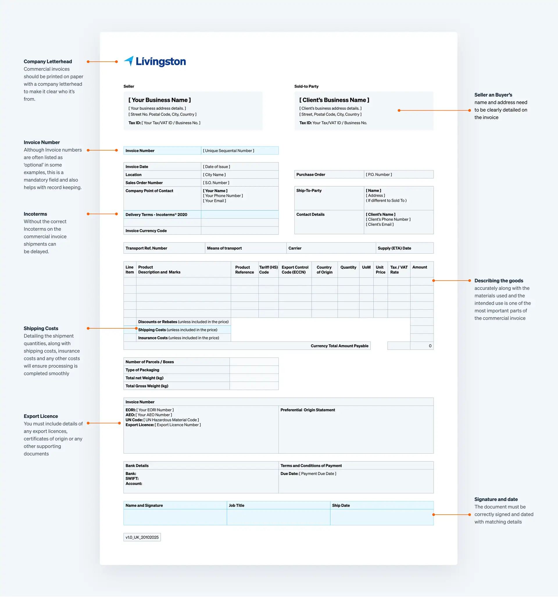 - Incoterms® of sale.