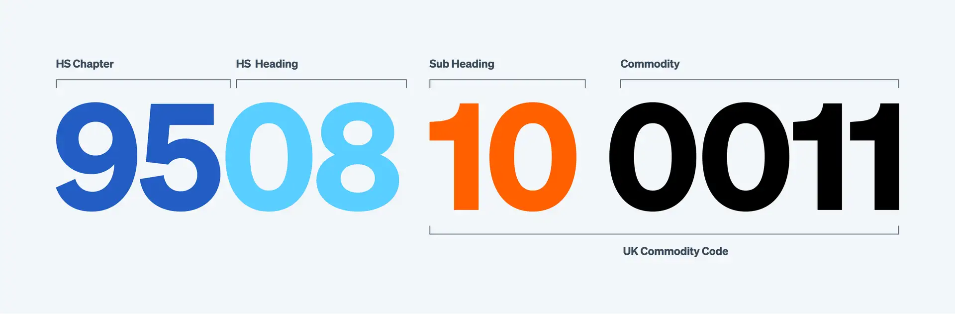 The HS Code, or Commodity Code, has a hierarchical structure. The first six digits are universal, the last four are country-specific.