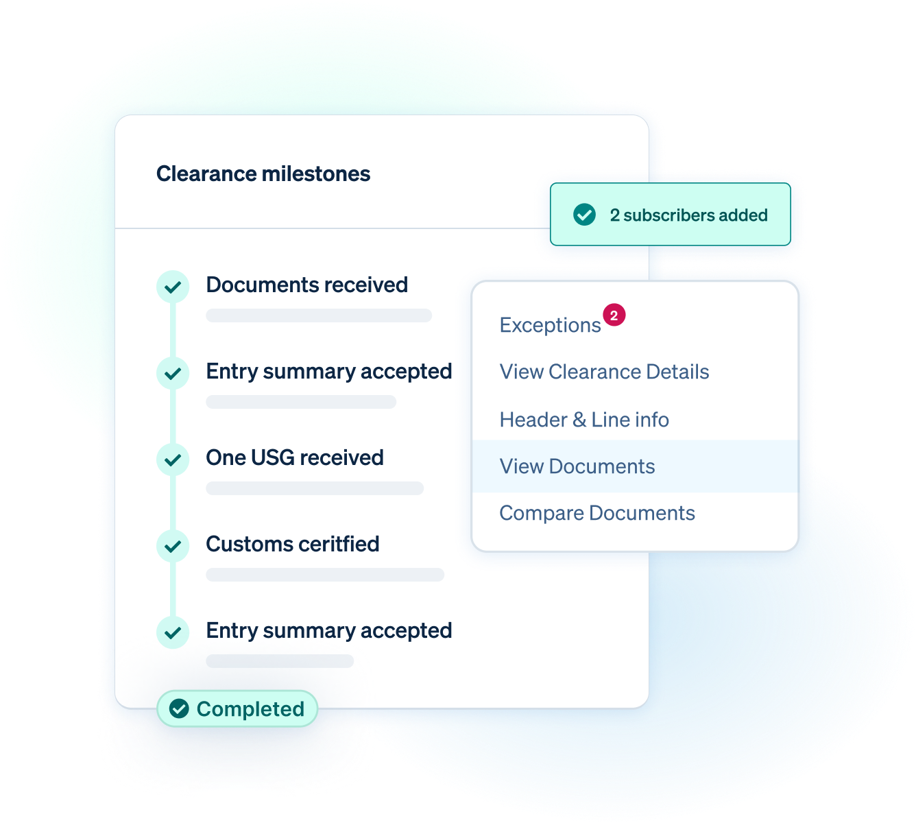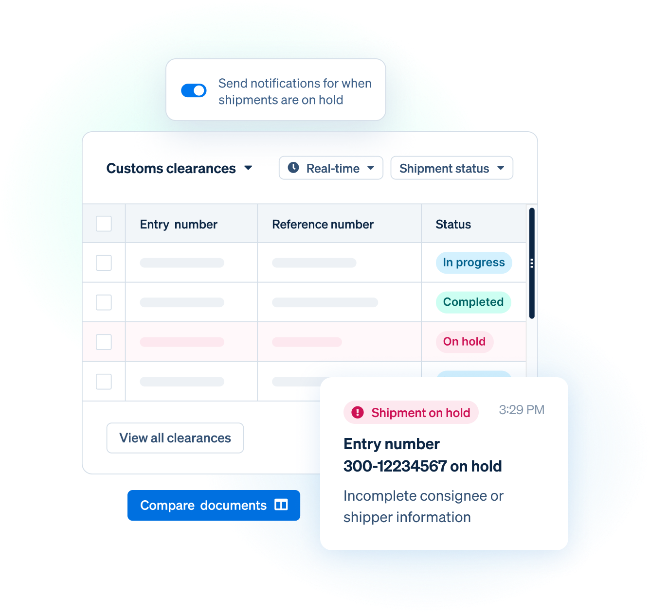 Follow shipments via text or email notifications. Alerts flag exceptions and required actions.