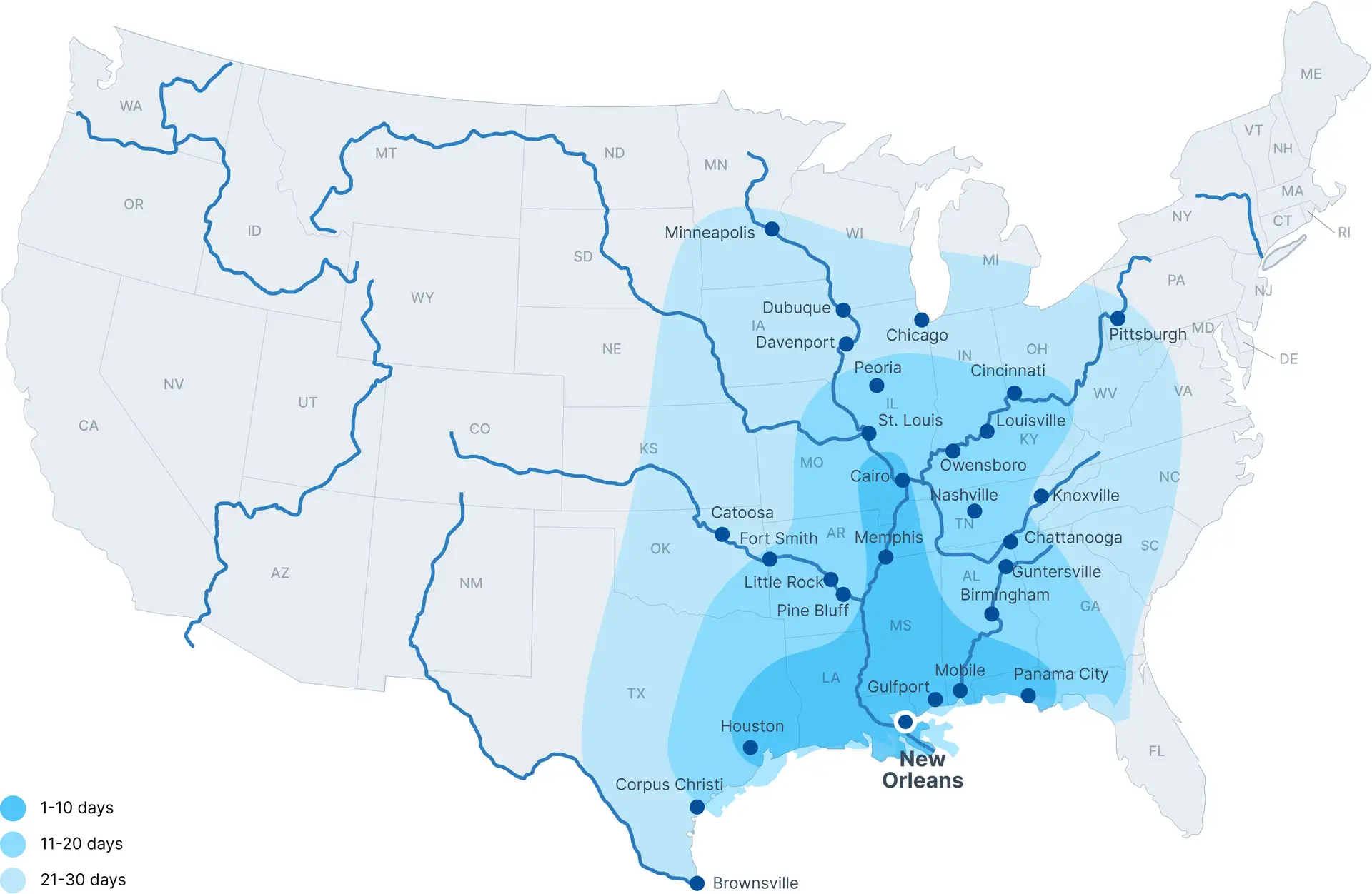 | Cairo, IL | 9 Days |
